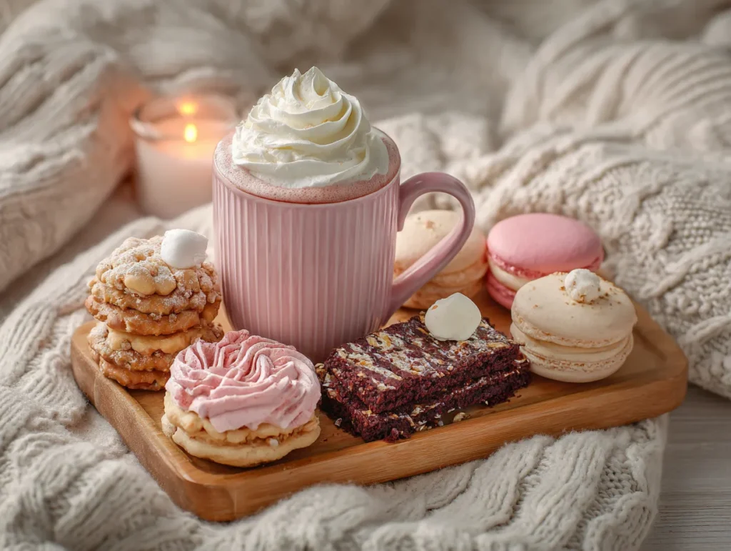 No cozy winter dessert spread is complete without something warm to sip. A mug of Pink Hot Chocolate turns any dessert moment into a full winter experience, especially when paired with cookies or bars.