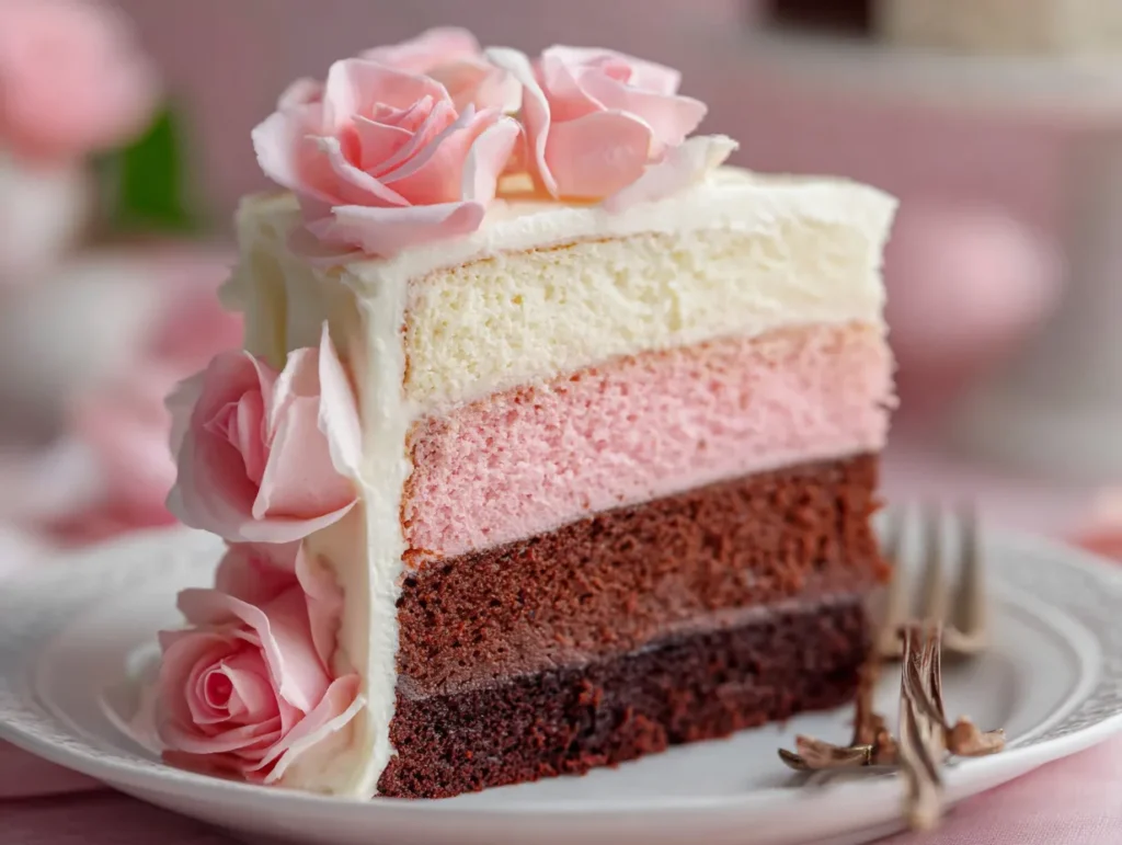 Neapolitan Rose Cake – Elegant, Floral, and Perfectly Layered