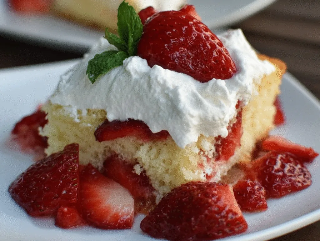 The result is a soft, buttery cake base layered with sweet strawberries and light whipped cream — simple, nostalgic, and incredibly delicious.